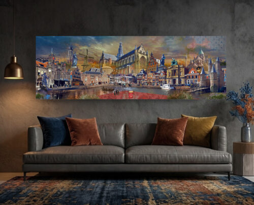 Fleurs de Lis II is deel van een set. Mocht je interesse hebben in beide stukken, neem dan contact op. Het grootformaat wordt maar eenmaal gemaakt. Dit kunstwerk toont een vrouwelijke figuur met een serene en contemplatieve uitdrukking. Haar gezicht wordt gedeeltelijk bedekt door een weelderige compositie van bloemen en planten, die op haar hoofd lijken te groeien als een levendige hoofdtooi. Deze flora staat symbool voor de gedachten in ons hoofd. Verschillende soorten flora zijn vertegenwoordigd, variërend van rozen en lelies tot meer abstracte, gestileerde bloemmotieven. De achtergrond heeft een verouderde, vintage textuur, die een gevoel van tijdloosheid geeft. De kleuren zijn rijk en gevarieerd, met dominante tinten van blauw, oranje en groen die een levendig contrast vormen met de huidtinten van de figuur. Haar kleding lijkt deel te zijn van de bloemenzee, met patronen die naadloos overgaan in de botanische elementen. De afbeelding is afgedrukt op hoogwaardig acrylglas, wat diepte en een bijna driedimensionaal effect geeft aan de weergave. Dit grootformaat kusntwerk, wordt het geleverd met een certificaat van echtheid dat de exclusiviteit en de waarde van het kunstwerk bevestigt. Het stuk zou een opvallende en elegante toevoeging zijn aan een verzameling en is ontworpen om een statement te maken in elke ruimte waar het wordt tentoongesteld. Formaat: 120 x 90 cm. Het canvas is 4 cm diep zonder lijst. Materiaal: Gemixte technieken, spuitbussen, acrylverf en collagetechnieken op canvas -