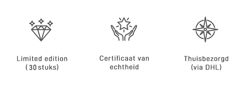 Het 4 cm diepe canvas geeft een luxe uitstraling. Ieder stuk heeft een genummerd certificaat van echtheid dat aantoont dat het maar 1 van de 30 stukken zijn die ooit op dit formaat gemaakt worden.