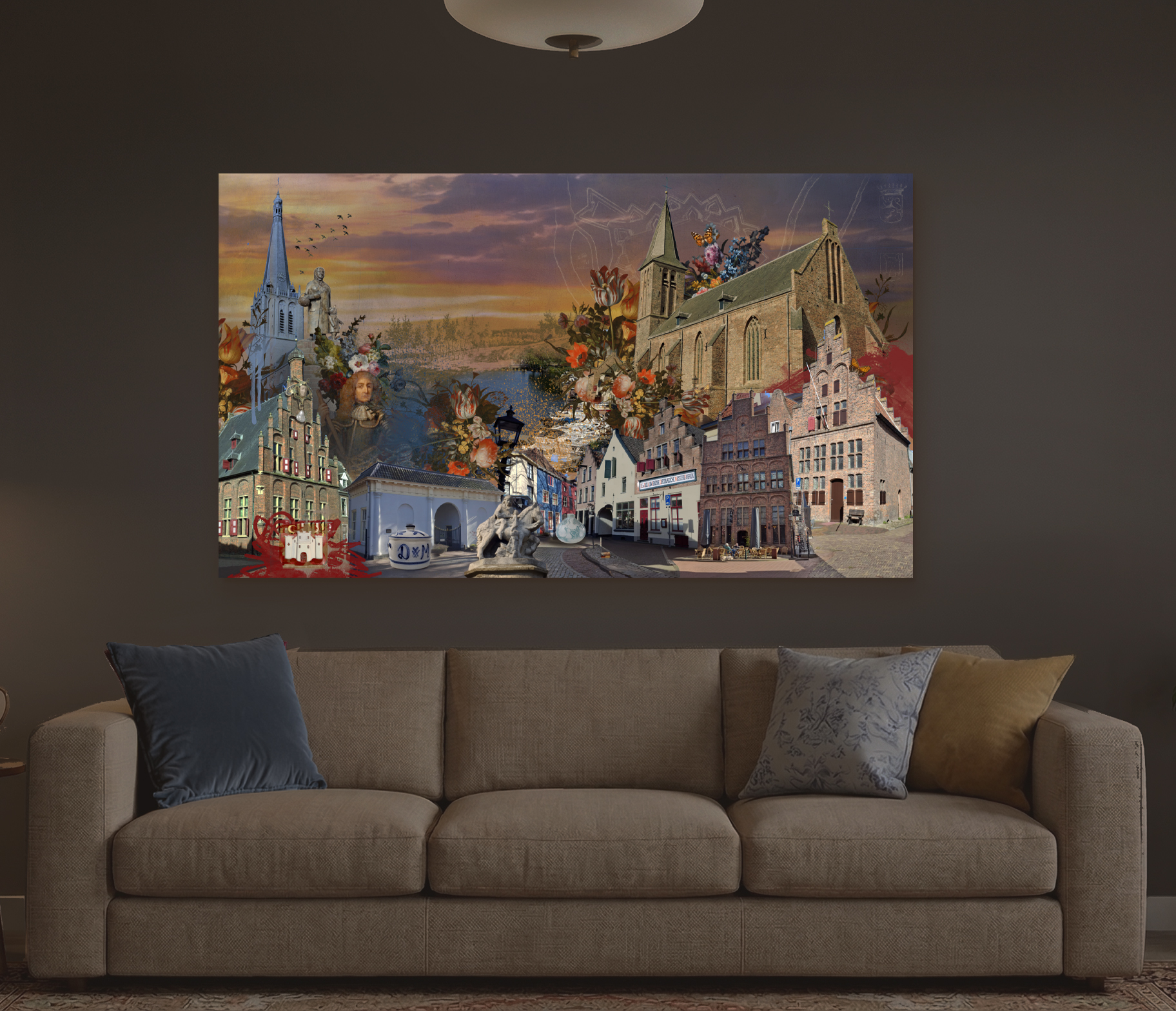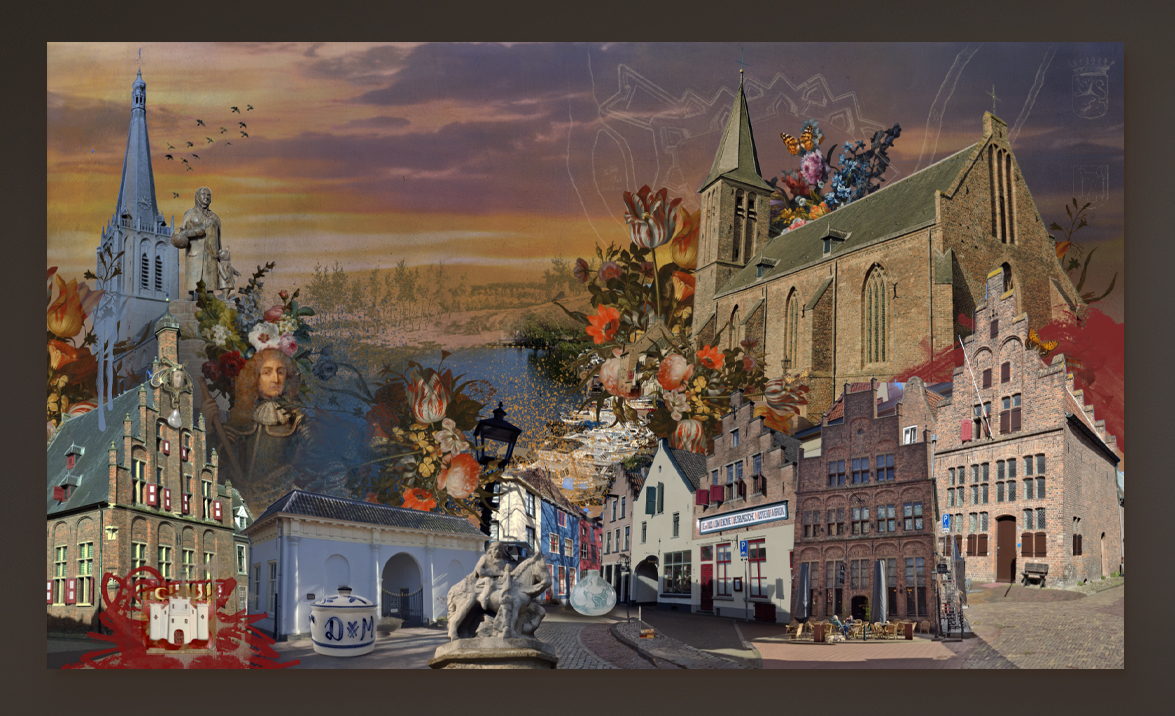 Doesburg: een stad waar verleden en heden samenkomen in een tijdloos weefsel. Deze Limited edition artprint combineert de iconische gebouwen zoals de Martinikerk en het Stadhuis met een krachtig historisch portret en levendige flora. Het rijke, gelaagde kleurenpalet van goud, koper en diepe blauwe luchten creëert een gevoel van warmte en tijdloosheid. Een perfecte weerspiegeling van de unieke sfeer van Doesburg, een stad met ruim 11.000 inwoners.