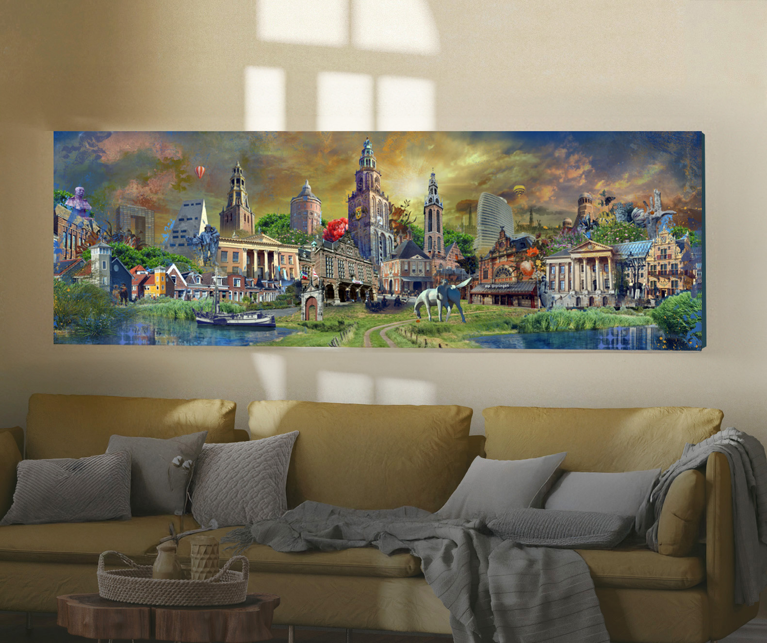 Met een diepte van 4 cm en een hoogwaardige canvas artprint straalt dit werk luxe en verfijning uit. Het Groningen Kunstwerk 2025 is niet zomaar een kunstwerk. Het is een ervaring en een visueel eerbetoon aan een stad die trots en energie uitstraalt.