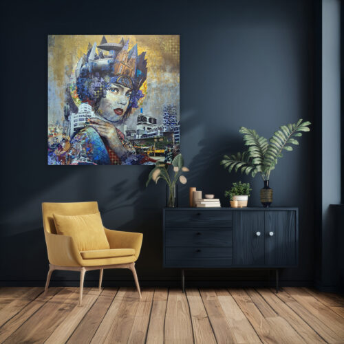 Ieder exemplaar heeft een indrukwekkend formaat van 70 x 70 cm, geprint op premium canvas dat de schoonheid en diepte van het kunstwerk versterkt. Het hoogwaardige materiaal in combinatie met een artprint van uitzonderlijke kwaliteit garandeert een ongeëvenaarde luxe uitstraling. Dit maakt “Dame Eindhoven” niet alleen een visueel indrukwekkend werk, maar ook een belevenis die je echt moet ervaren. De balans tussen stadse trots en moderniteit is prachtig vastgelegd in elke penseelstreek en detail.